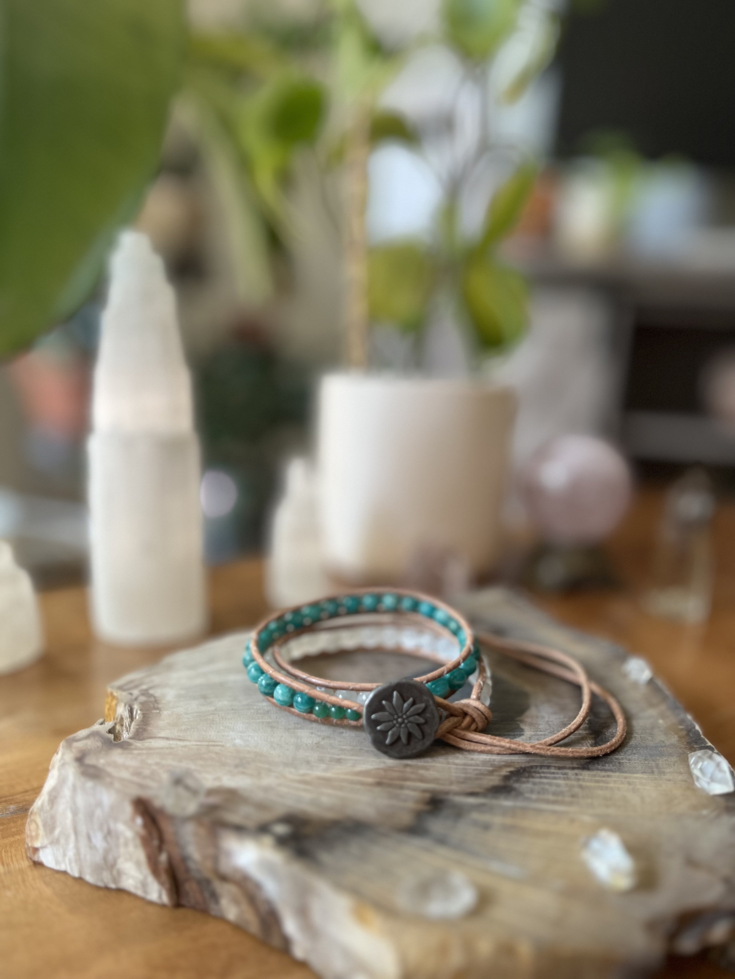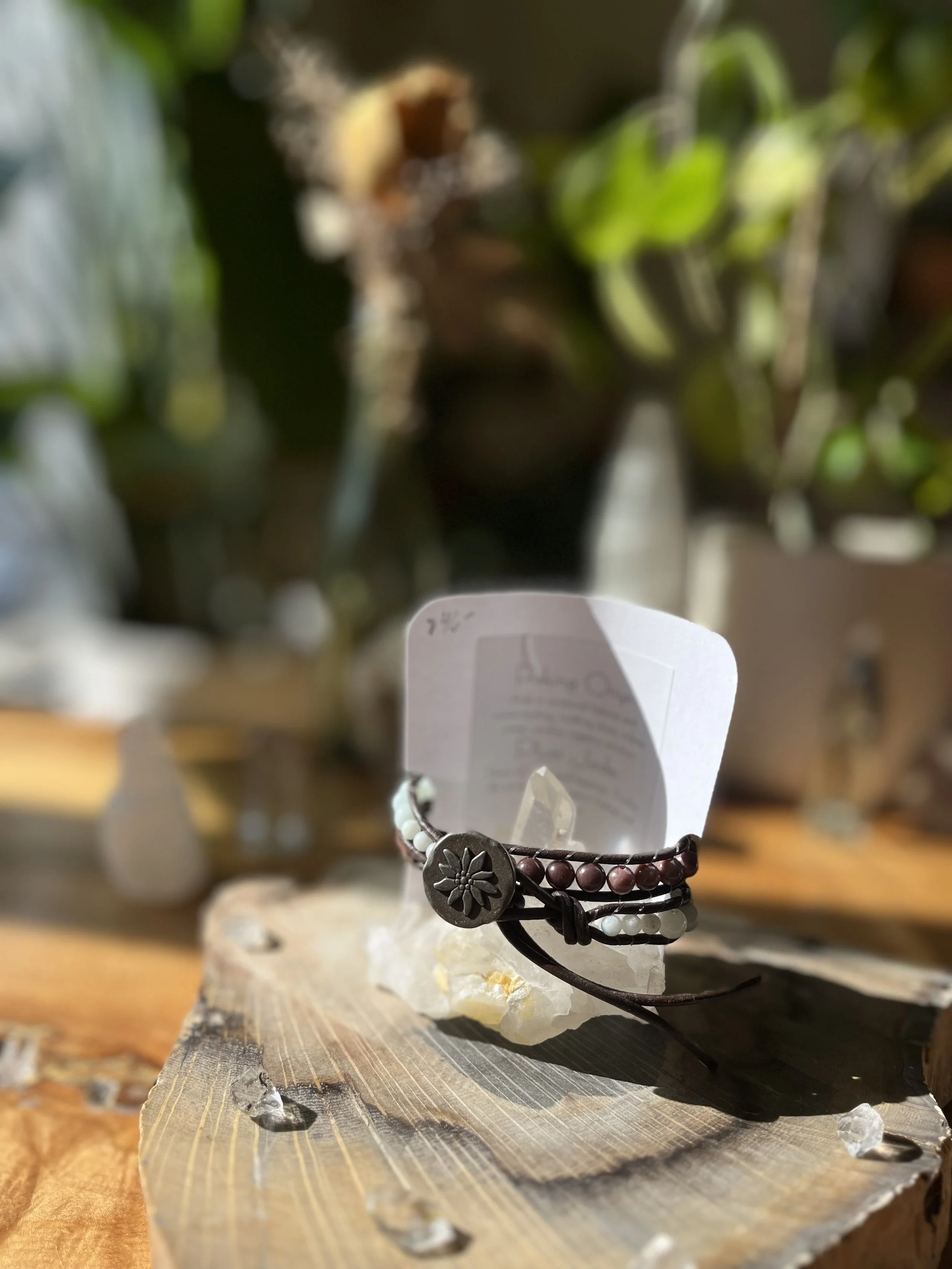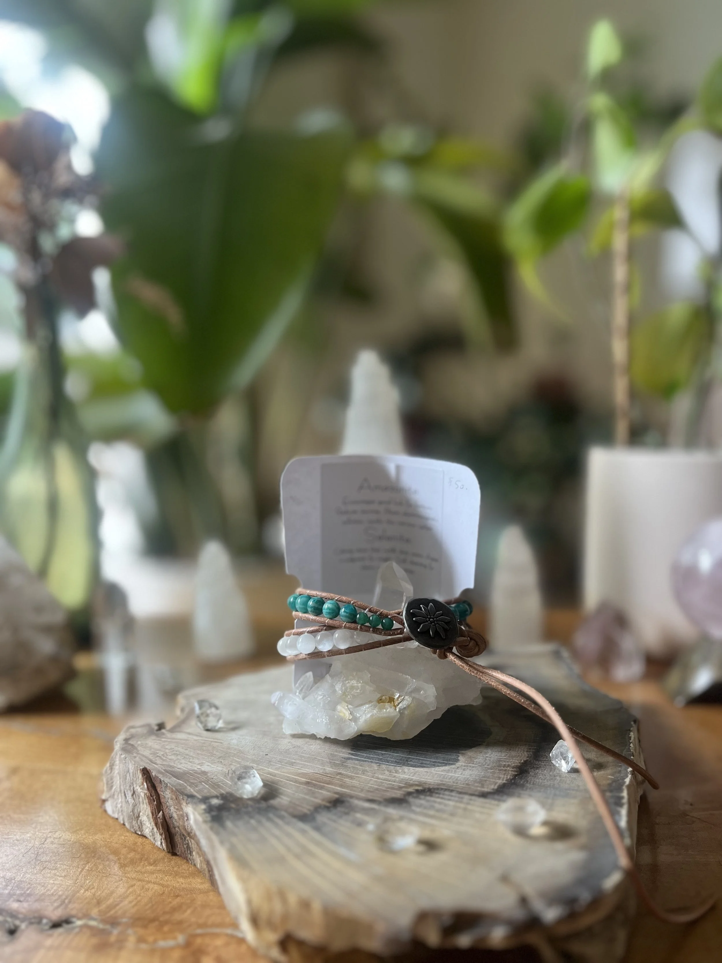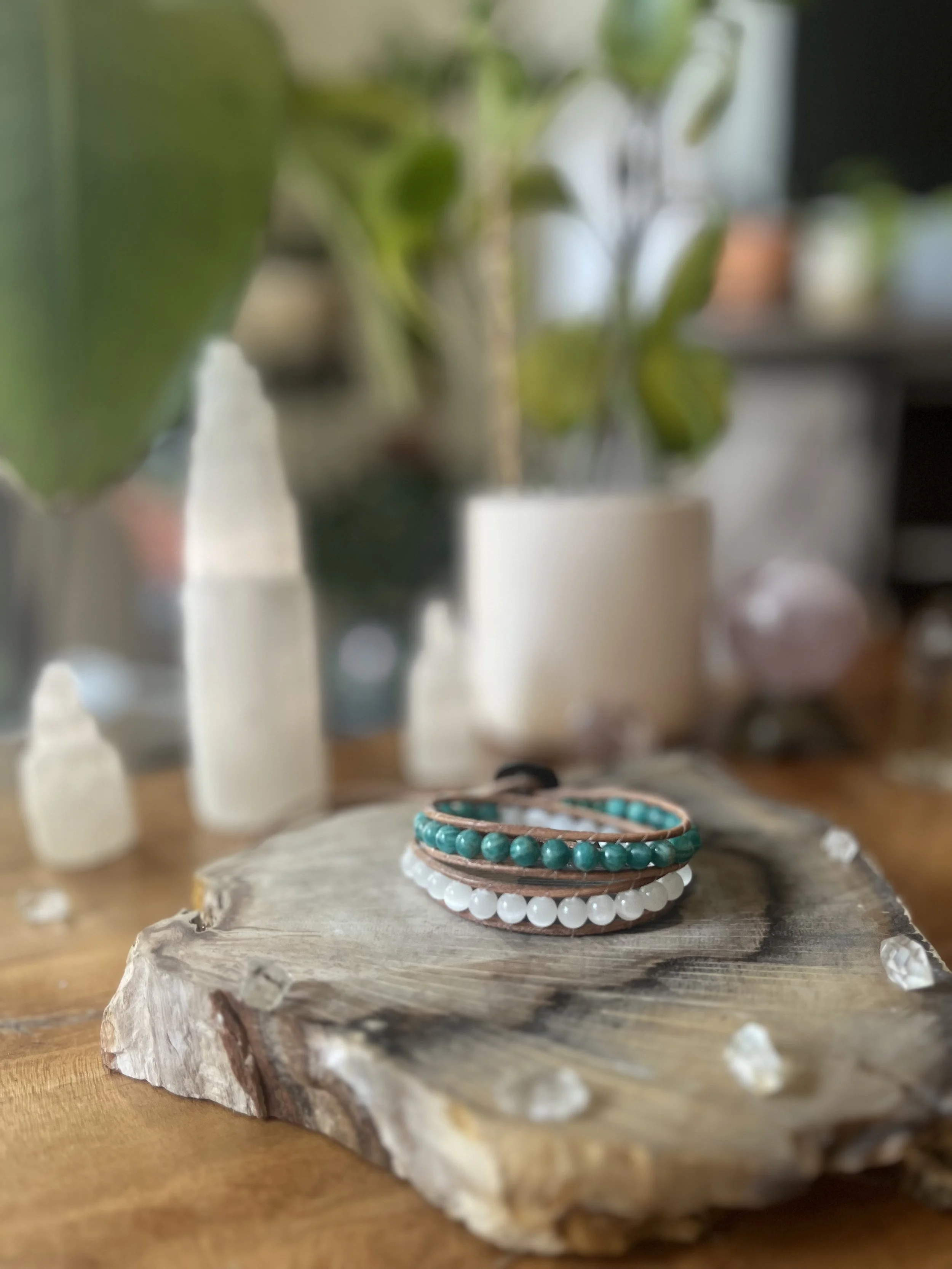 Shop Categories: All Single Wrap Bracelet Double Wrap Bracelet All | Single Wrap Bracelet | Double Wrap Bracelet | Rose Quartz + Citrine $62.00 Lepidolite $60.00 Tree Agate $60.00 Red Creek Jasper $58.00 Garnet $55.00 Amazonite + Selenite $60.00 Blue Lace Agate $60.00 Blue Tigers Eye $60.00 Labradorite $60.00 Sunstone $55.00 Larimar $30.00 Mongolian Turquoise $32.00 Larimar $33.00 Amazonite + Picture Jasper $64.00 Aqua Terra $60.00 Peruvian Turquoise $33.00 Amazonite $58.00 Amethyst $30.00 Larimar $65.00 Blue Lace Agate $65.00 Peruvian Turquoise $76.00 Sold Out Peking Onyx + Plum Jade $50.00 Lepidolite $30.00 Amethyst $30.00 Sold Out Jet $30.00 Amazonite $28.00 Amazonite + Selenite $50.00 African Turquoise $60.00 Moonstone + Chrysocolla $56.00 Red Creek Jasper $62.00 Fluorite $53.00