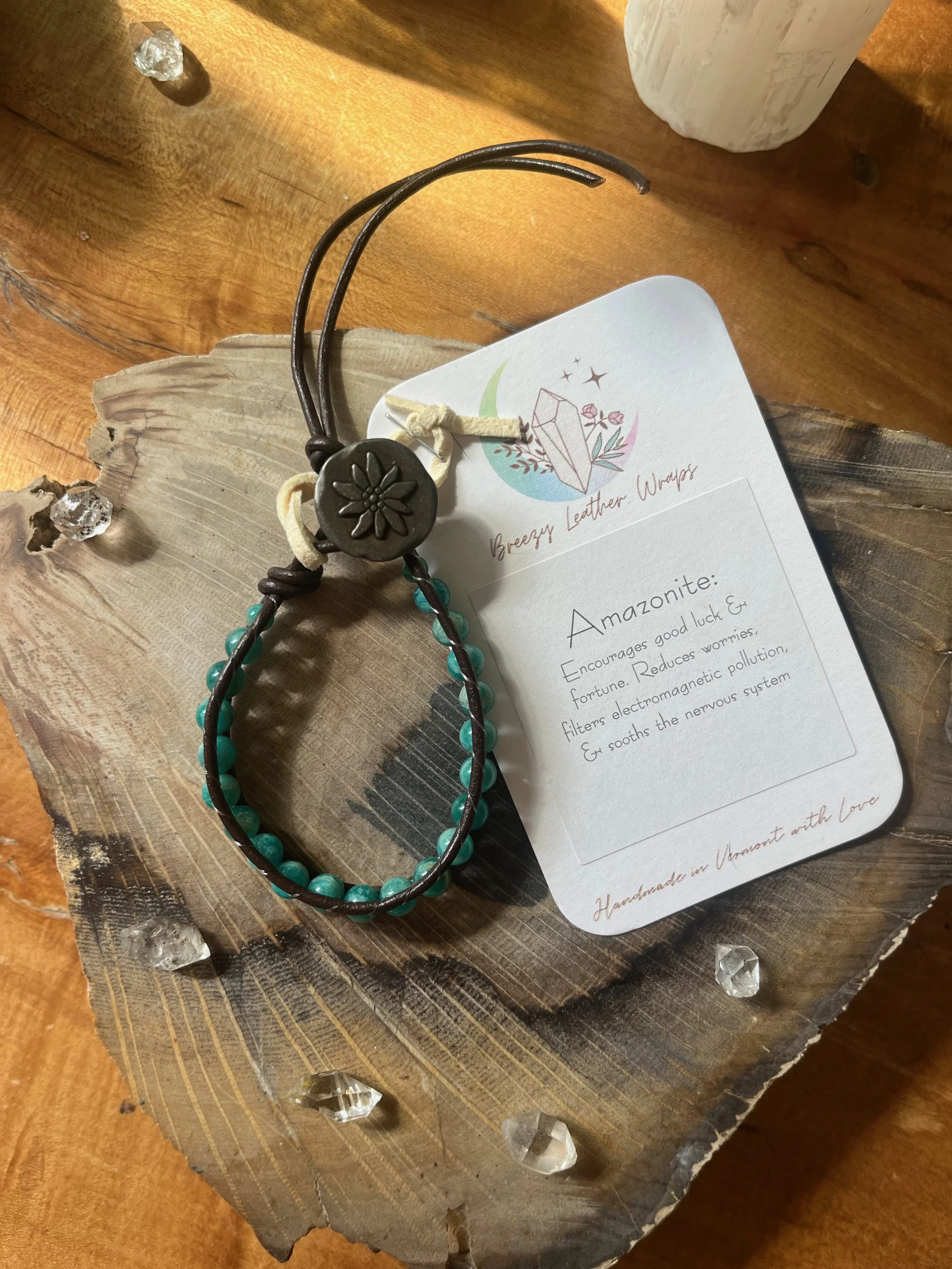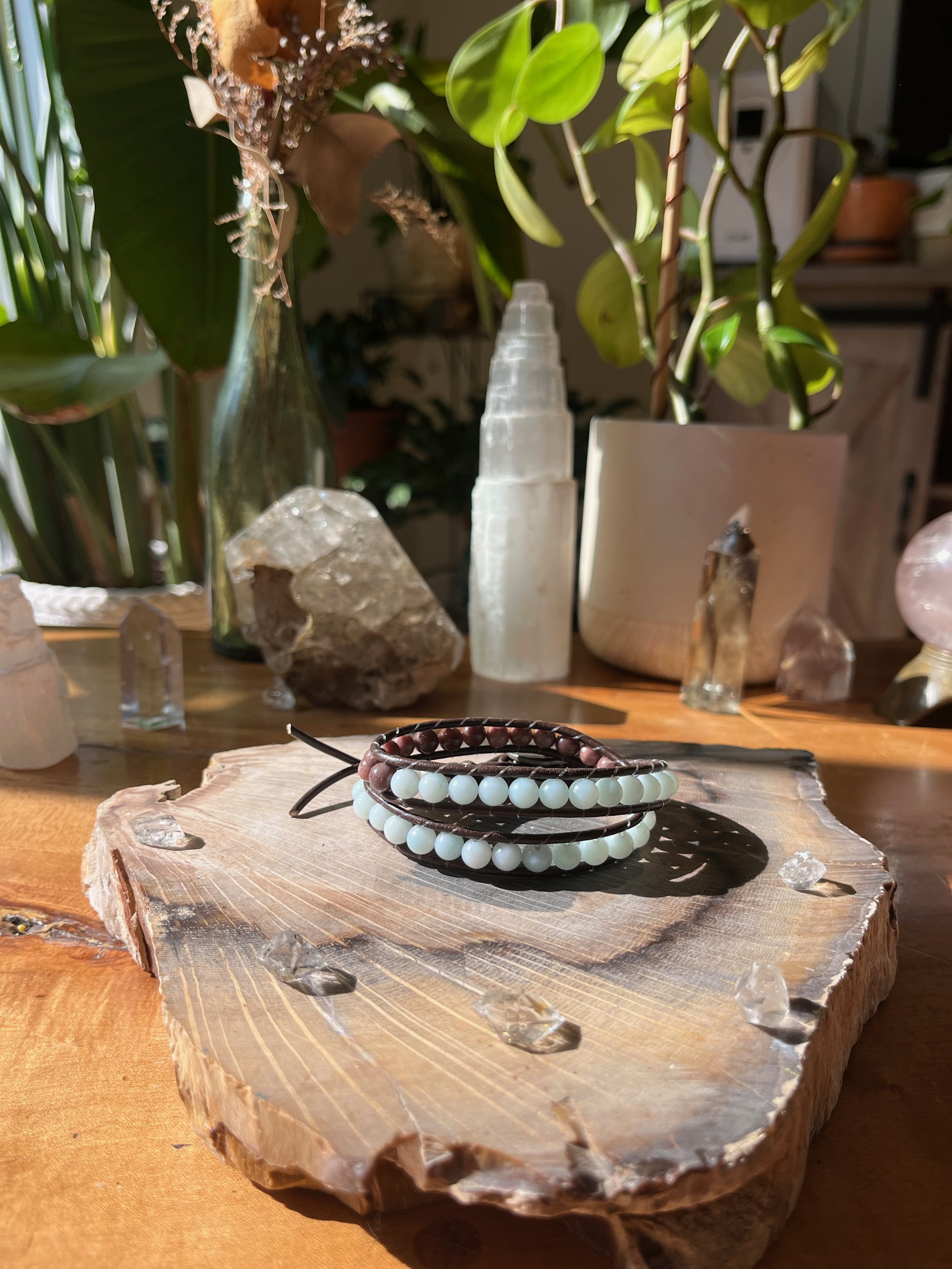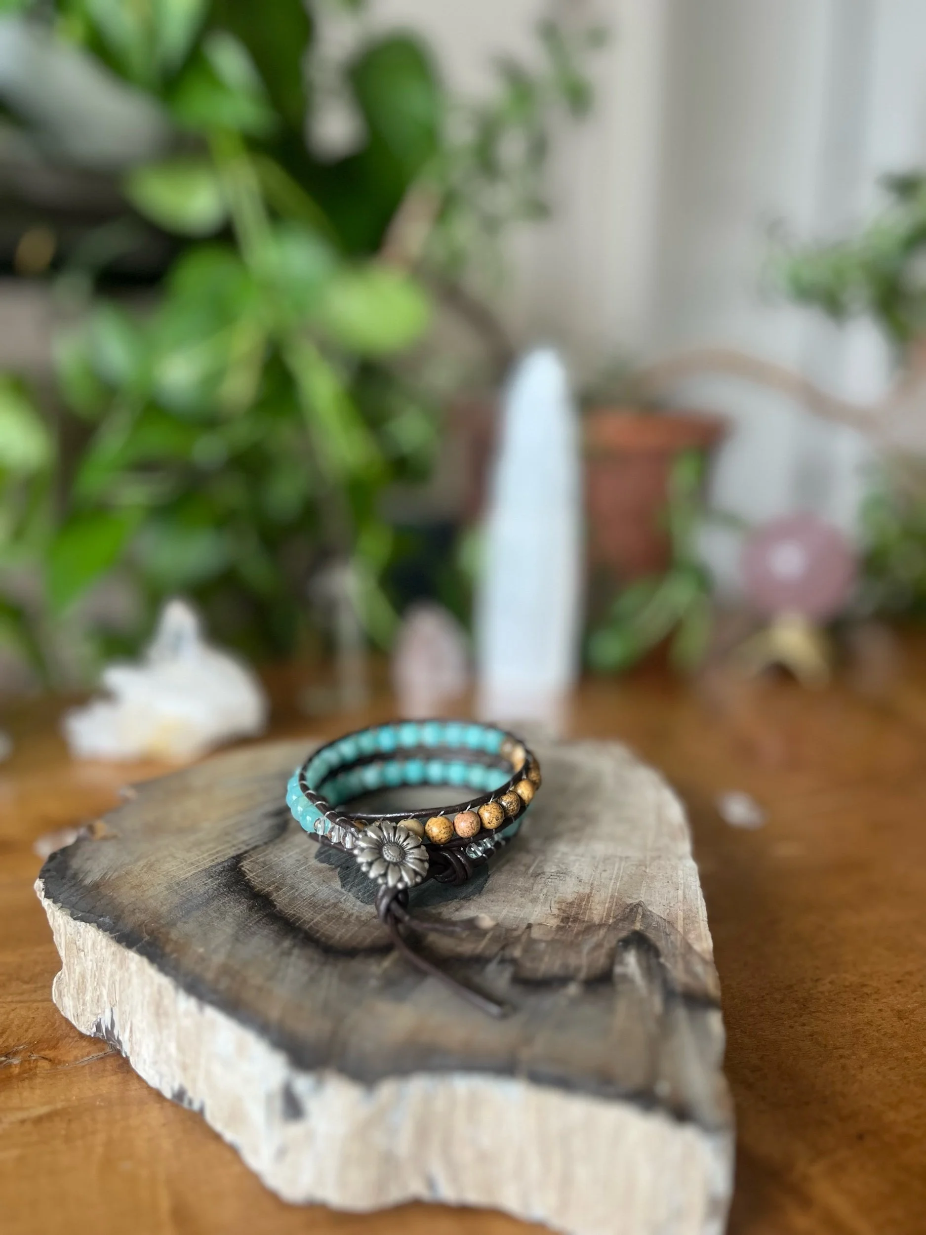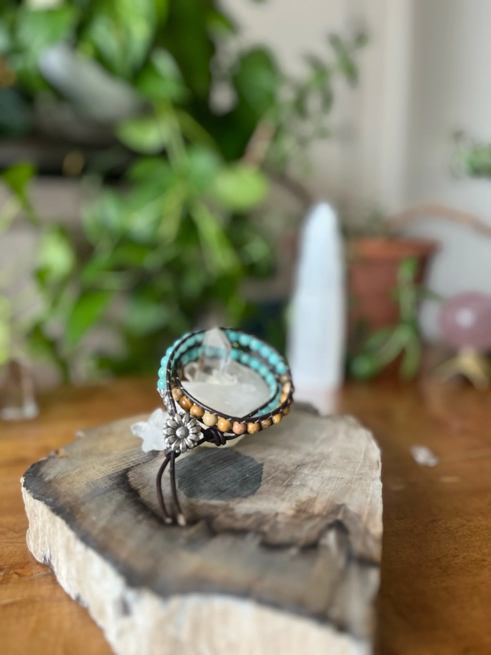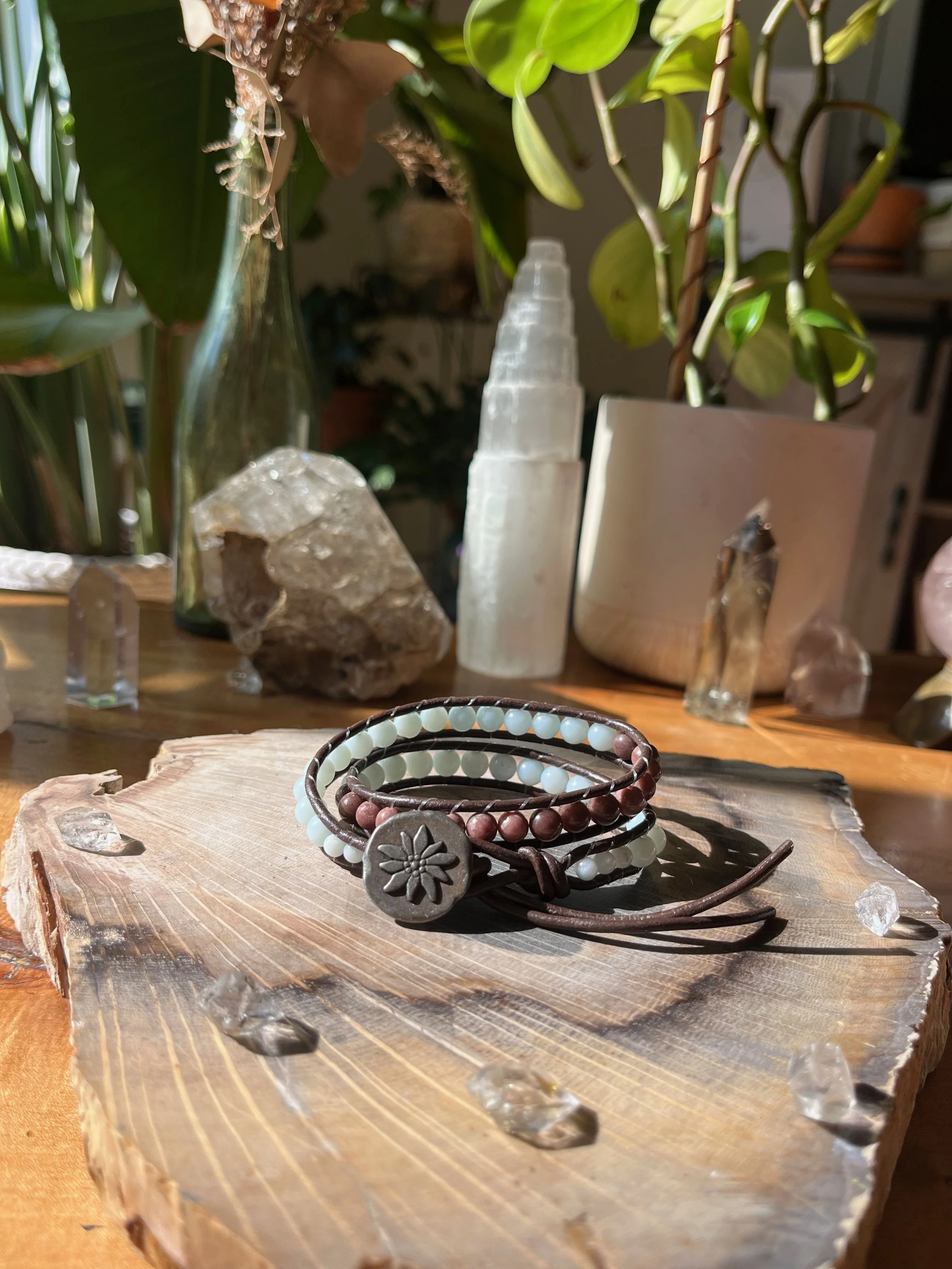 Shop Categories: All Single Wrap Bracelet Double Wrap Bracelet All | Single Wrap Bracelet | Double Wrap Bracelet | Rose Quartz + Citrine $62.00 Lepidolite $60.00 Tree Agate $60.00 Red Creek Jasper $58.00 Garnet $55.00 Amazonite + Selenite $60.00 Blue Lace Agate $60.00 Blue Tigers Eye $60.00 Labradorite $60.00 Sunstone $55.00 Larimar $30.00 Mongolian Turquoise $32.00 Larimar $33.00 Amazonite + Picture Jasper $64.00 Aqua Terra $60.00 Peruvian Turquoise $33.00 Amazonite $58.00 Amethyst $30.00 Larimar $65.00 Blue Lace Agate $65.00 Peruvian Turquoise $76.00 Sold Out Peking Onyx + Plum Jade $50.00 Lepidolite $30.00 Amethyst $30.00 Sold Out Jet $30.00 Amazonite $28.00 Amazonite + Selenite $50.00 African Turquoise $60.00 Moonstone + Chrysocolla $56.00 Red Creek Jasper $62.00 Fluorite $53.00