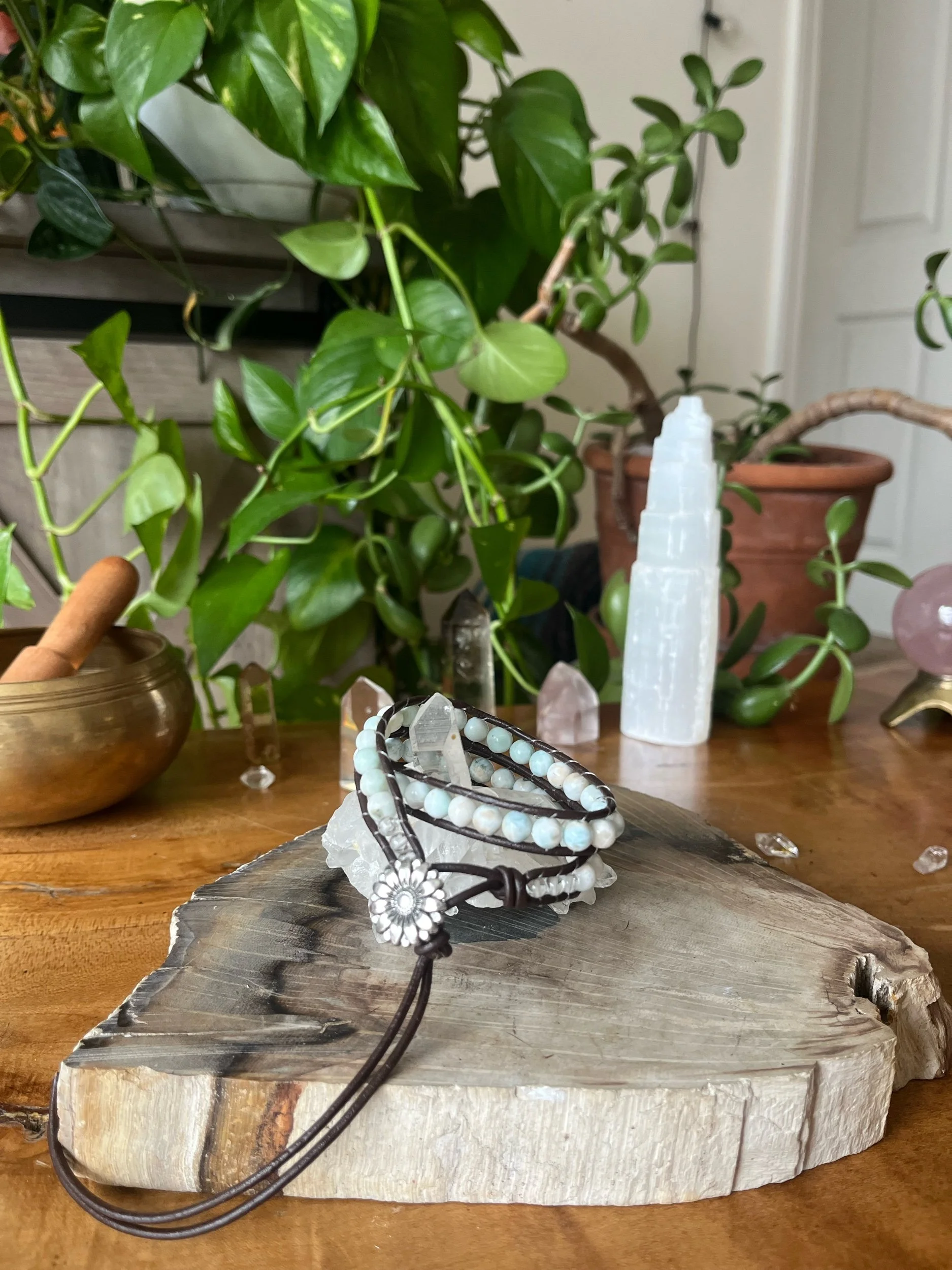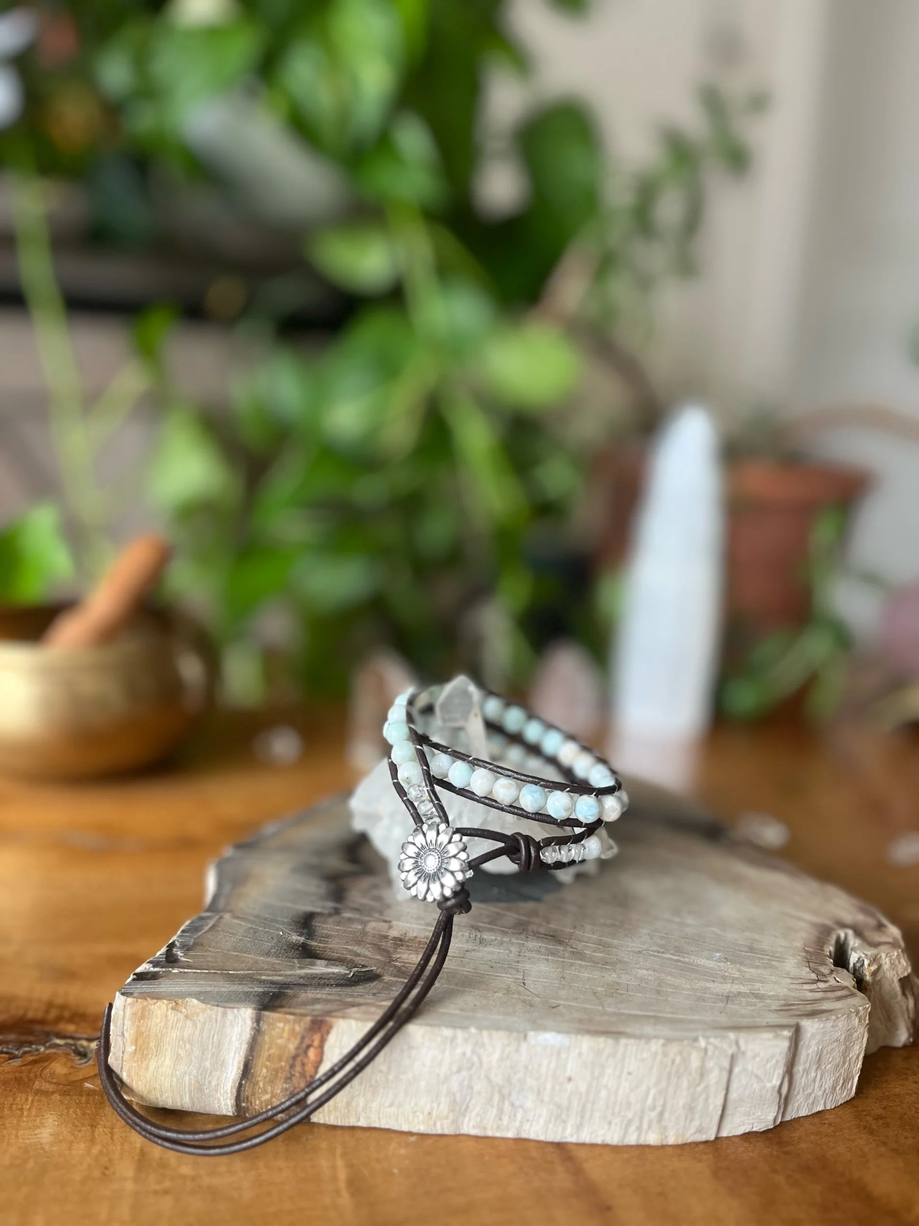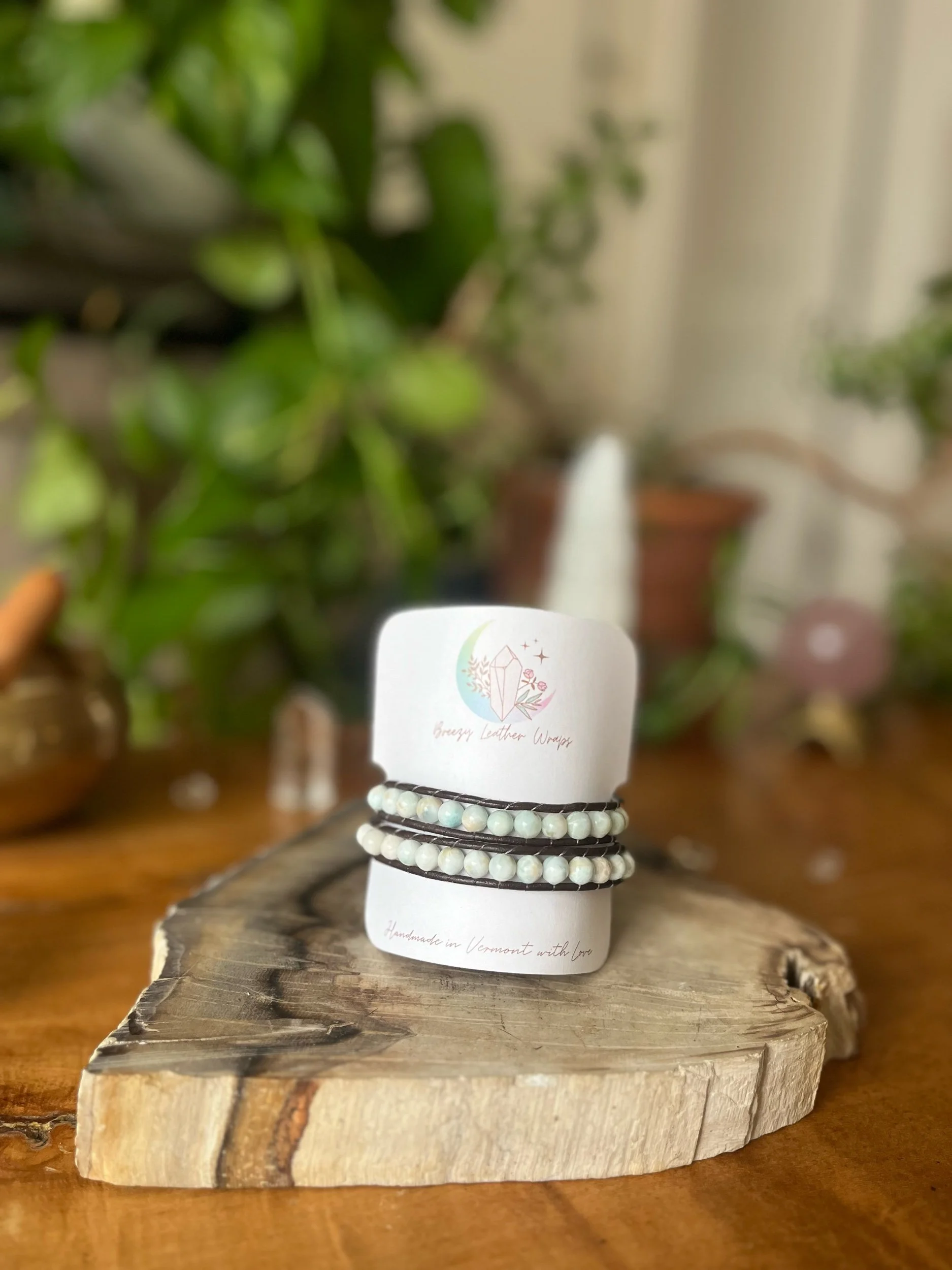 This double wrap bracelet is handmade using ethically sourced genuine gemstones and premium leather.